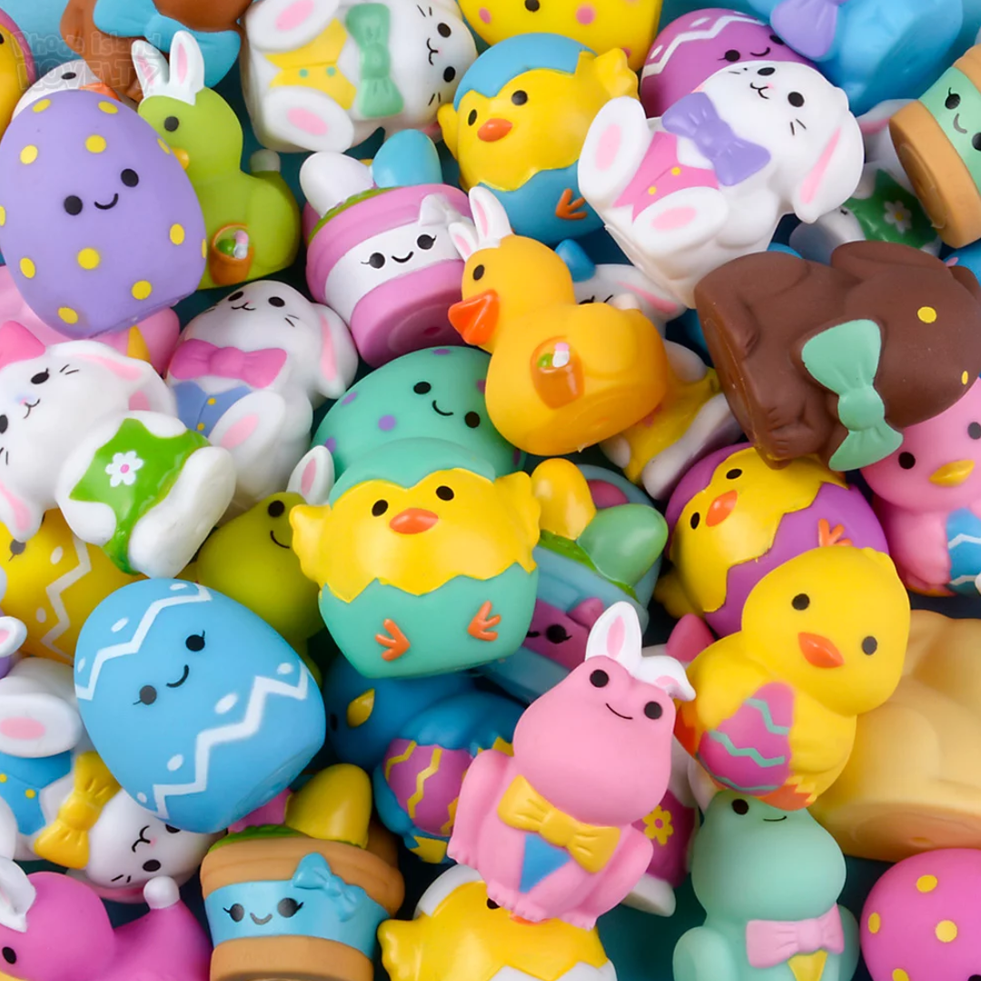 - 2" Rubber Easter characters with assorted designs